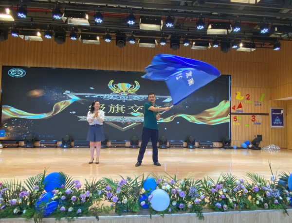 2019级学子要全力以赴,以最新的姿态、最热血的拼搏迎接初三的学习和生活。因此,王春艳主任在本次活动中,将级旗交接给年轻有为的张洋主任,由他担任级长,带领学子们走得更远,让学业增值。
