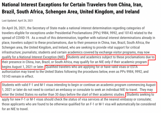 上周,美国国务院也更新了F, M和学术J签证的重要公告:部分前往美国的国际生将有资格免面签。