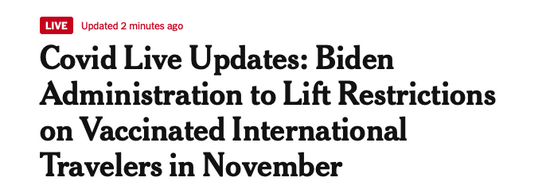 近日美国拜登政府官宣:从11月初开始,将向所有接种疫苗的外国人放宽旅行限制。