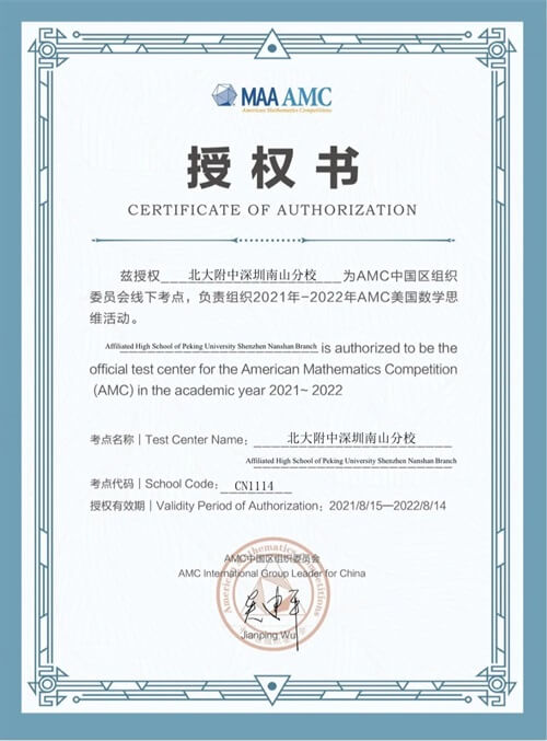 (一) 由于各方面情况的调整与变化,本网所提供的【北大附中深圳南山分校国际部喜获AMC美国数学竞赛授权!】仅供参考,并不意味赞同其观点或证实其内容的真实性,相关信息敬请以权威部门公布的信息为准。