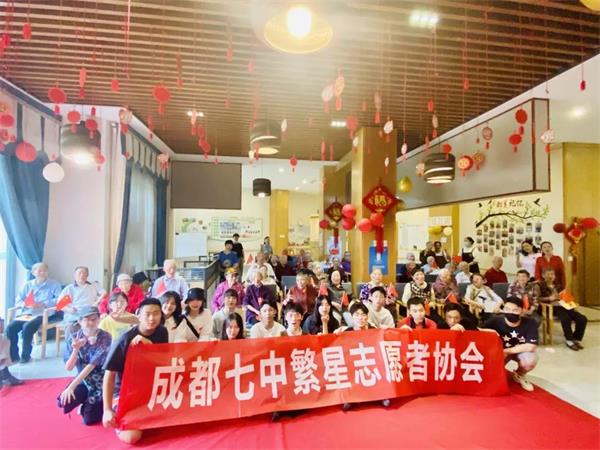 成都七中国际部繁星志愿者队国庆假期前往某敬老院,通过精心排练的节目表演,带给老人们来自社会来自年轻人的的关怀与温暖。