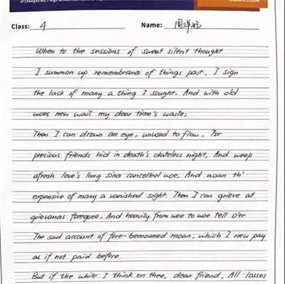 为了规范同学们的英语书写,培养良好的书写习惯,提高英语学习的兴趣,学校高一年级全体学生开展了第一届英文书法比赛。