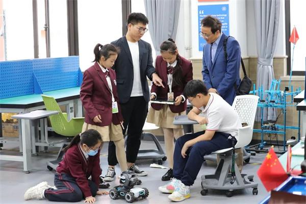 企业家们还重点参观了学校图书馆、参照国外先进水平打造的工程设计实验室、智能机器人实验室、设施一流的室内游泳馆、并为学校大力开设科技创新课程,高度重视学生研究能力培养的种种举措点赞。