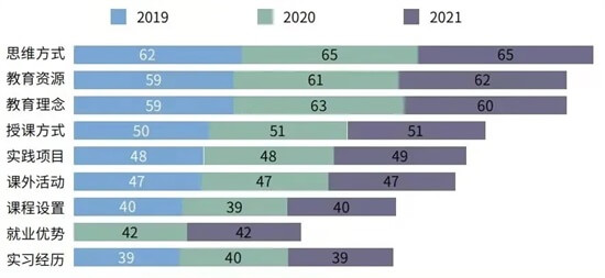 提升自我能力是意向留学人群的主要目的,且占比呈上升趋势。同时,留学人群的观念也在不断动态变化之中,思维方式、教育资源和教育理念是留学的主要吸引力,而单纯将出国留学作为“提升就业前景”的人群则占比下降。