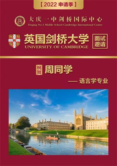 2018年,大庆一中剑桥国际中心2018届毕业生徐嘉阳同学代表龙江本土国际教首次敲响了英国剑桥大学之门,今年我校2021届毕业生曾子铭、姜佳玥两名同学也凭借优异成绩顺利考入英国剑桥大学。就在刚刚开始的2022申请季中,剑桥大学再次将我们抛向橄榄枝,发来一封面试邀请,每年来自全球优秀学子的申请信如雪花般飘向剑桥大学,我们的学子能够从众多申请者中脱颖而出获得面试机会,相信这也是这所世界排名前三的顶级名校对大庆一中剑桥国际中心培养结果的高度认可!