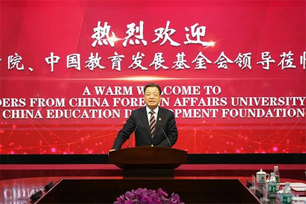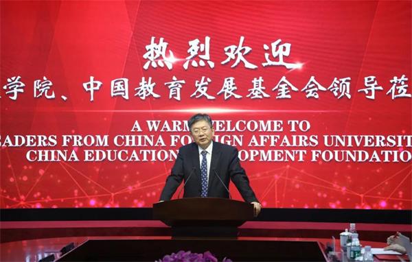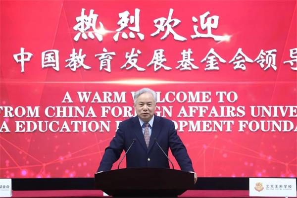 外交学院院长、党委副书记徐坚出席签约仪式并发表现场讲话。徐坚院长对外交学院的人才培养模式、发展历程等进行了全面介绍,并表示北京王府学校作为中外合作制学校的一面标志性旗帜,一直以来都是青少年国际教育的领航者,王广发总校长作为外交学院从前的董事,与外交学院情谊深厚,长久以来都保持着良好的合作伙伴关系,外交学院将合理使用王府学校的捐赠资金和中国教育发展基金会的配套资金,设立王府奖学金项目,用于培养和鼓励外交学院的优秀学生、青年教师赴海外一流的高校或研究机构交流学习,同时将与王府学校开展青少年外交官师资交流等合作项目,为国家培养更多服务于外交外事领域的一流人才。