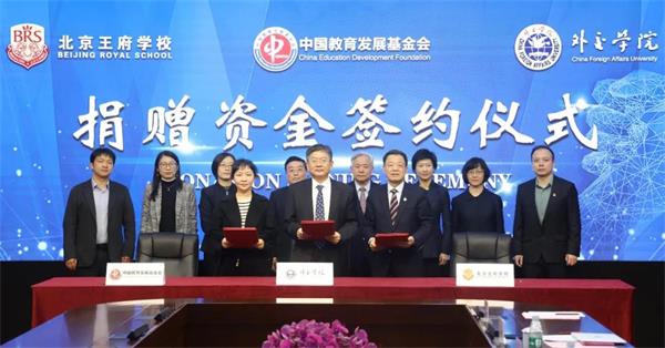 在多方见证下,北京王府学校、外交学院和中国教育发展基金会就优秀学生教师国际交流合作签署捐赠资