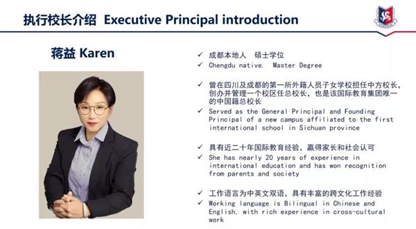 Welcomes New Executive Principal Ms. JiangYi