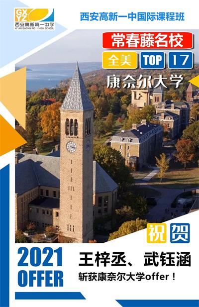 热烈祝贺西安高新一中国际班2022届武钰涵、王梓丞两名同学被美国常春藤名校、顶尖研究型大学康奈尔大学录取!
