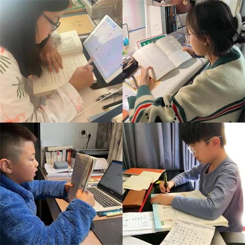 所有学生积极响应,自觉做好居家晨诵、学习、健身、劳动、欣赏等时间版块安排。家长们鼎力配合,按时上报数据,反馈学习情况,搞好后勤保障。三方共同奋战的合力让学生有方向,有秩序,有向心力,有亲切感。