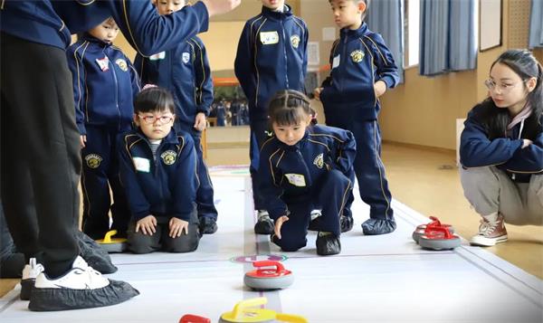 旱地冰壶是冬季奥运会项目冰壶的普及版,活动现场,老师为学生们普及冬奥知识、冰壶历史、冰壶规则、动作要领。随后,学生们分组进行实地演练比赛,观察路径、俯身握壶、投掷推出......在冰壶碰撞的瞬间欢呼雀跃,充分享受这项运动带来的欢乐。