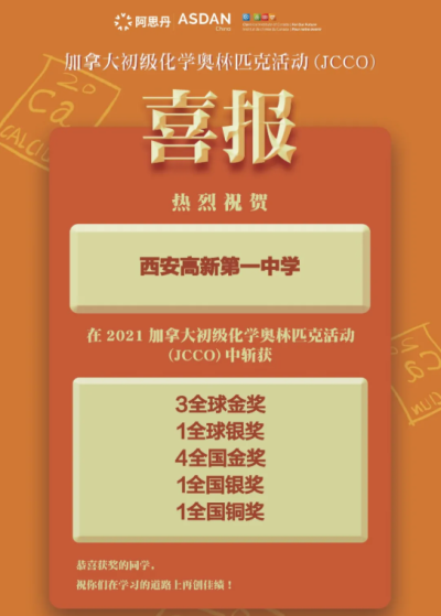 在“2020加拿大初级化学奥赛(JCCO)”全球赛中,西安高新第一中学国际班喜获三金、一银的优异成绩。