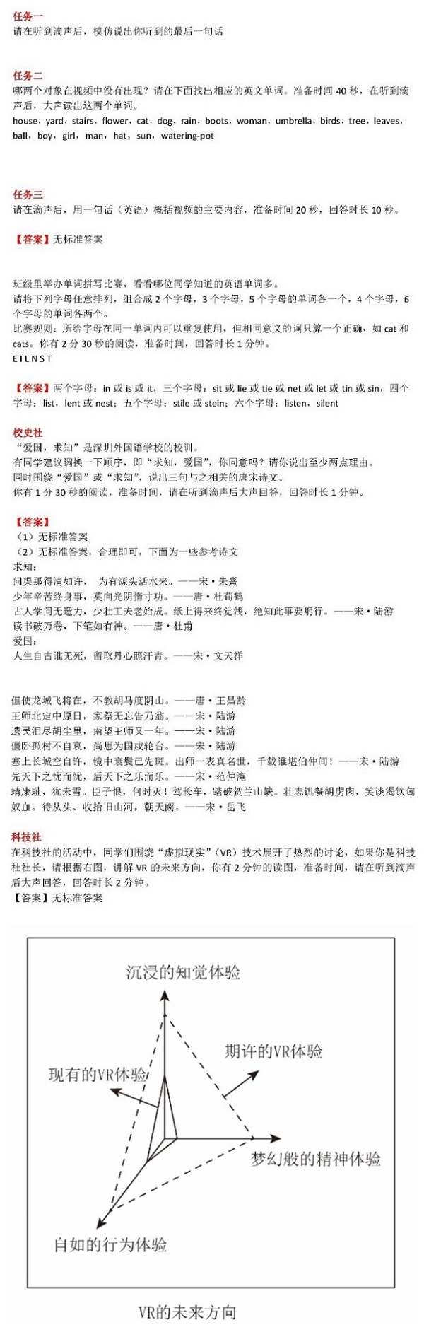 最近深圳家长群都在讨论深外考试的题目,直呼要求太高啦!深外第二轮语言能力评估在昨天早上结束,通过视频录制的方式进行,15分钟就考了5道题,几乎是要秒出答案的!那今年深外考了什么题目?视频录制考察什么?难度如何?一起来看看吧。