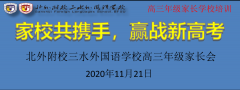 【北外附校三水外国语学校校园动态】家校共携手 赢战新高考家校共携手 赢战新高考北外附校三水外国语学校高三年级召开家长会为更好地促进家校联合,增进家长对学校教育教学管..