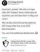 美国大学理事会官宣 - 取消SAT2考试和SAT的写作部
